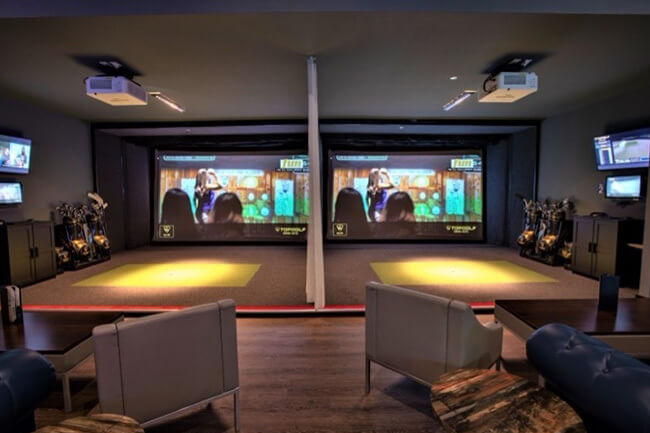 The Topgolf Swing Suite features individual bays equipped with state-of-the-art game simulators and comfortable lounge seating. Each bay boasts a projector screen and a wide variety of virtual games, including: