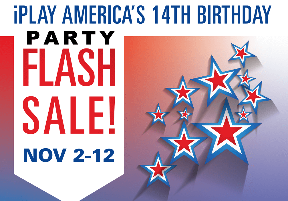 iPlay America is turning 14 years old! To celebrate, we’re hosting a Birthday Party FLASH SALE where you can get GREAT DEALS on our most popular parties. Save up to $250 on awesome party packages.* See the discounts below! Call ASAP 732-577-8200 to start booking today!